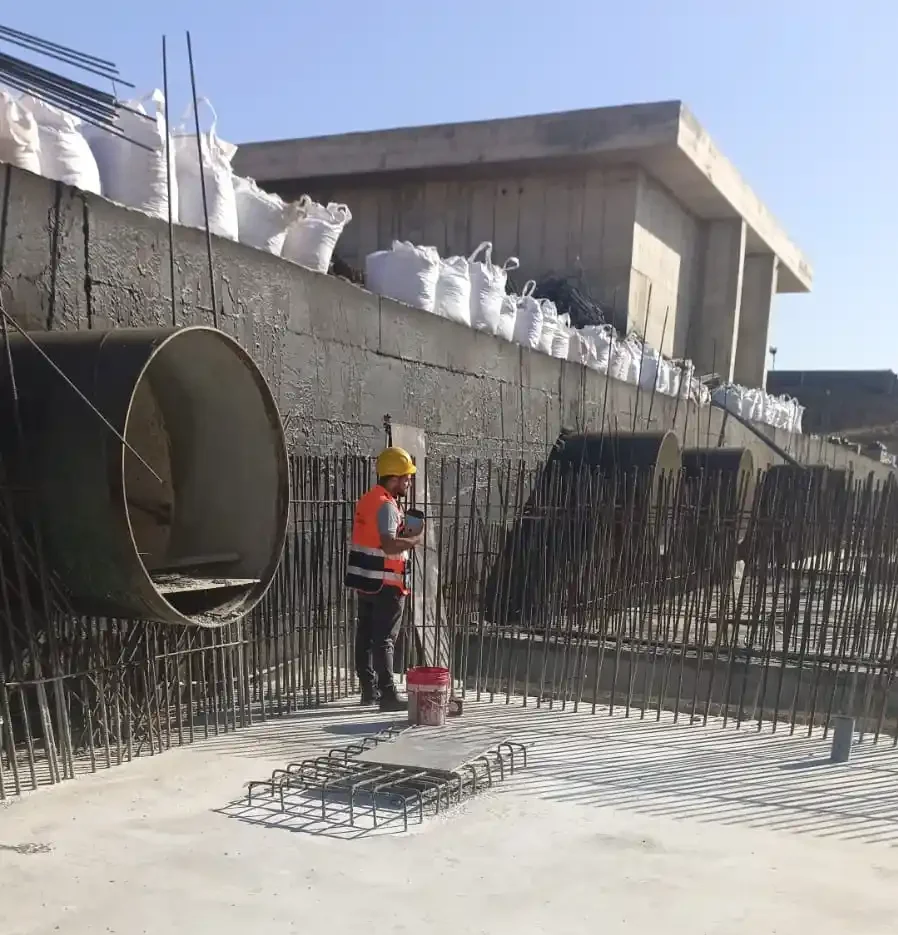 ביצוע עבודות עפר, מצעים, יסודות ומסדים, יציקה ואספקת בטון, החלקת בטון ע"י הליקופטר, פלדת זיון עבור תאי שאיבה, איטום יסודות ומסדים, איטום רצפות, איטום תפרים, עצרי מים חיצוניים, טופינג, קורות דרוכות למבנה הבריכה.