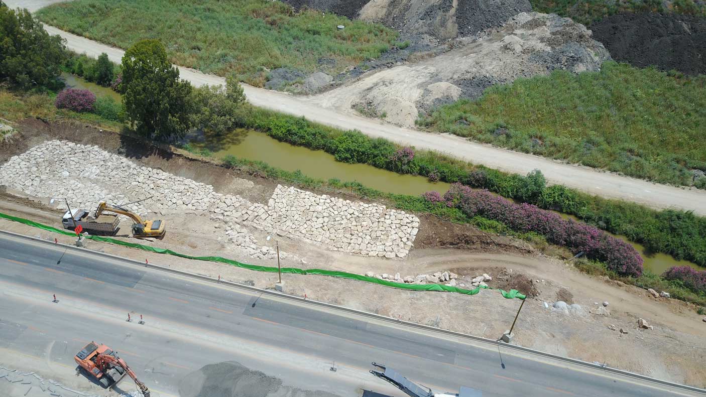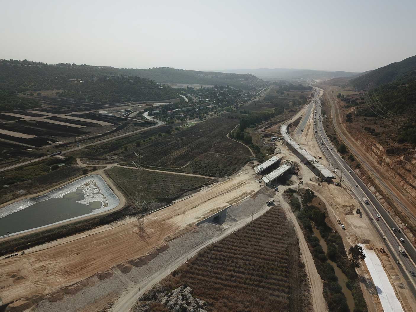 Bridge between two traffic islands connecting Shaar Ha’amekim 6/75 Interchange from the east with Jamalah camp on the west.