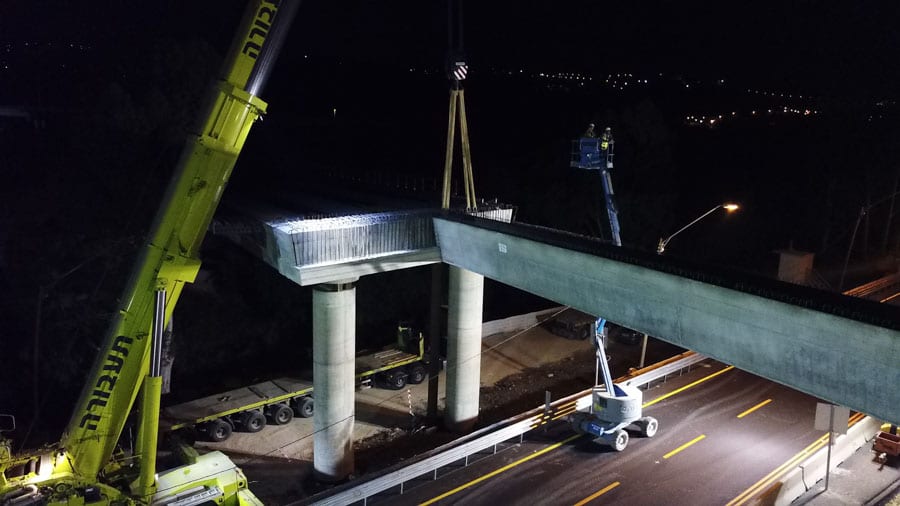 The bridge passes over Nahal Hakishon, Highway 70 and Haemek railway access road on the western side of the bridge up to the entrance to Jamalah camp, in the military camp. The project included extremely complicated bridge work, including laying beams and placing them under operational conditions. Due Olenik’s experience and technology, the works were professionally performed, in full compliance with all safety requirements and conditions.